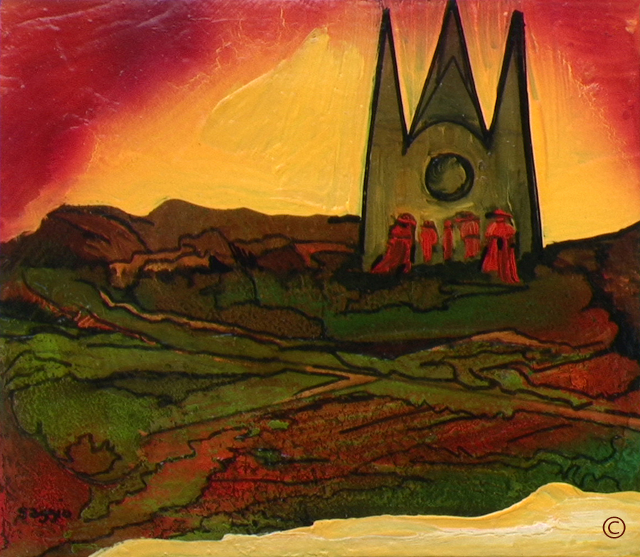 Saggio's oil on wood painting, saturated with worldly and transcendent elements, depicts a scene both spiritual and kind. The solitude within the strokes conveys courage and confidence, reminiscent of a survivalist navigating the intricacies of the soul. Divine light and radiance emanate from the artwork, enveloping the observer in an aura of warmth and friendliness.