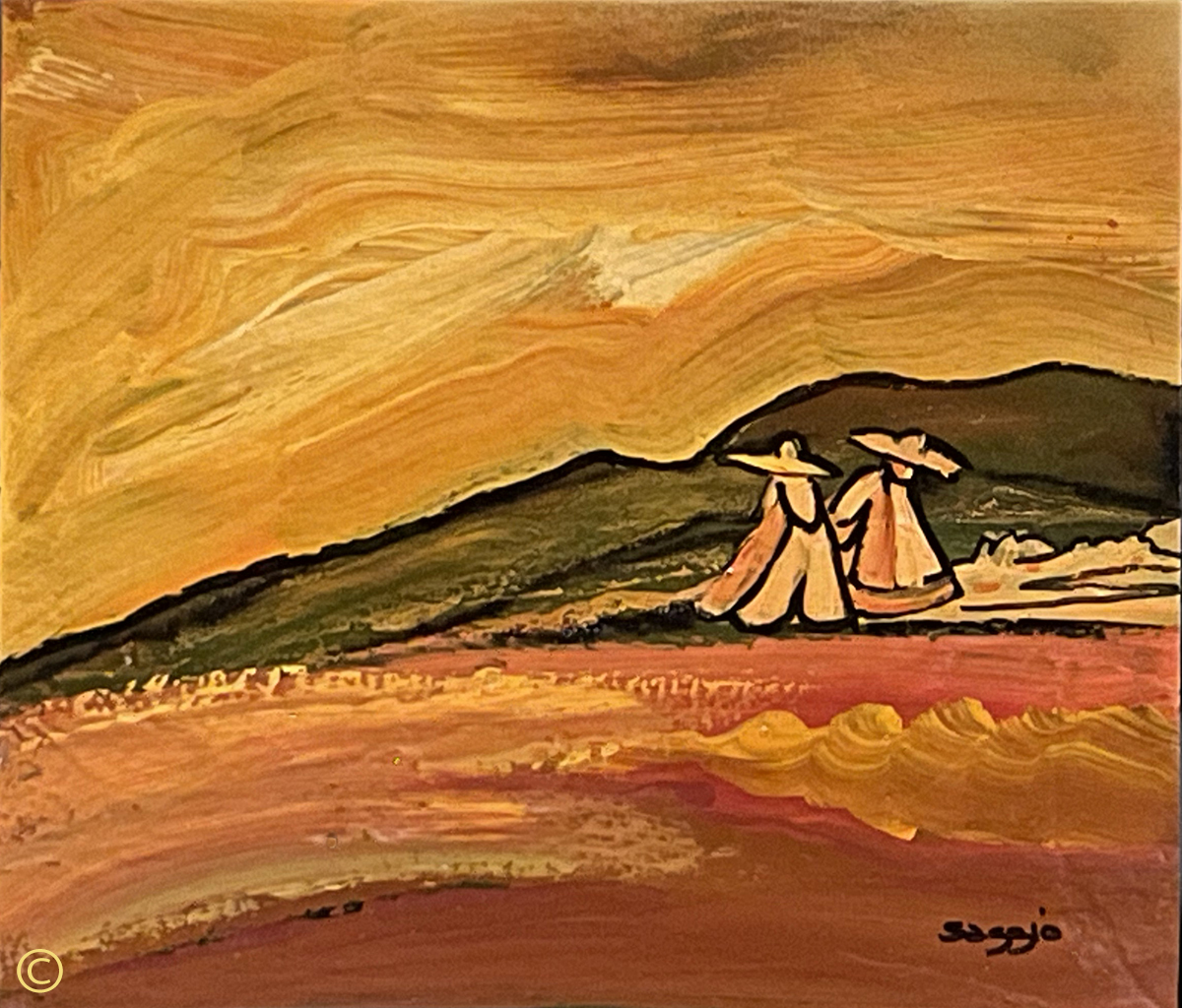Inspired by the spirit guides of the universe, Saggio embarked on a journey to extend and solve the complexities of true friendship and forgiveness, infusing the painting with profound meaning.